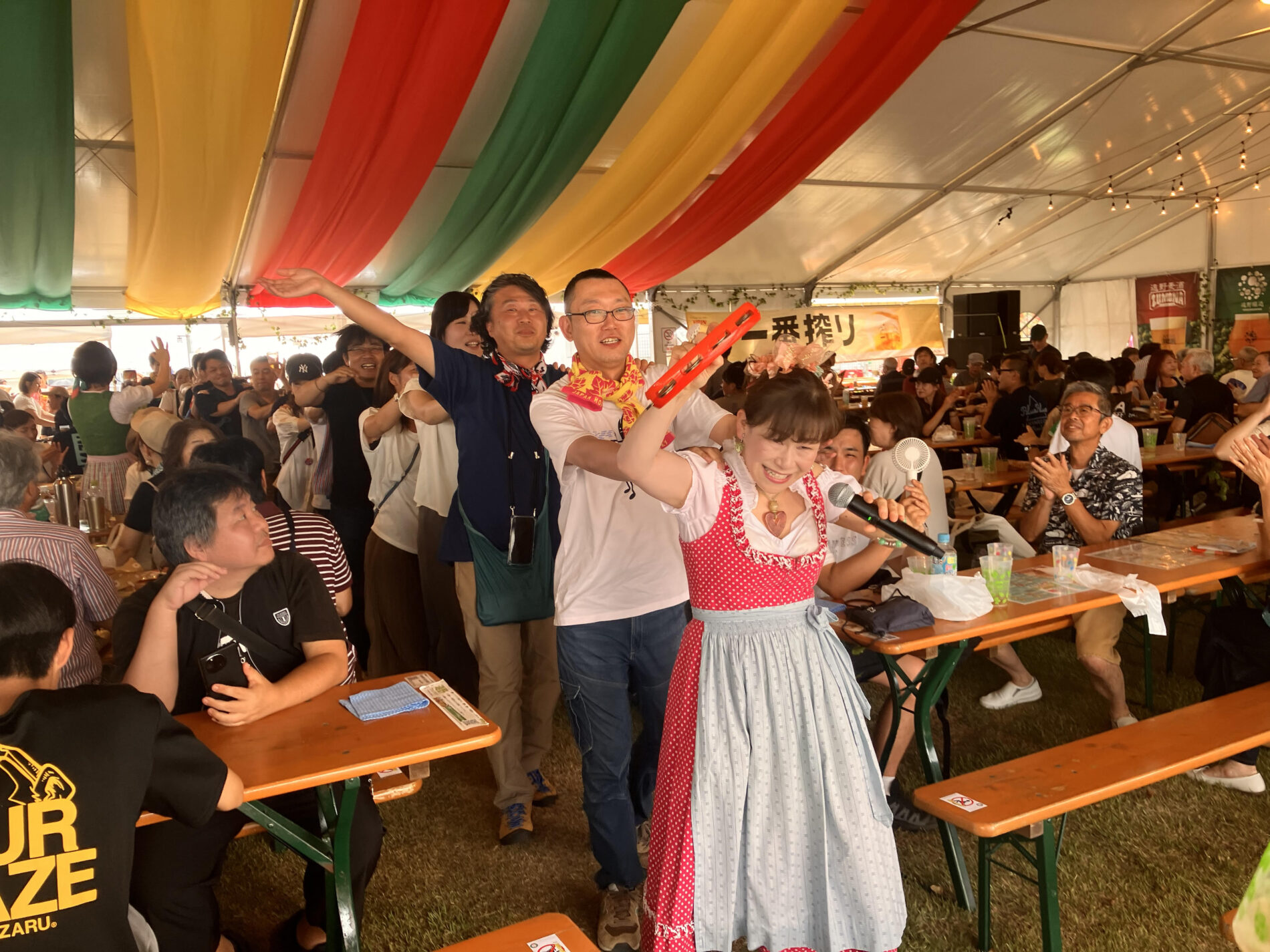 遠野ホップ収穫祭では恒例のドイツ民謡楽団「ALPINA」の皆さんによる生演奏。2日間で計7回のステージ登壇で、会場を盛り上げてくれました。